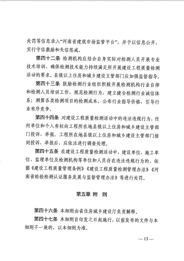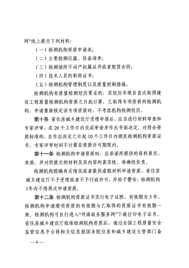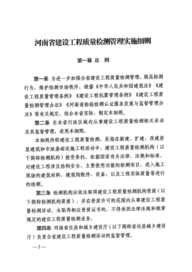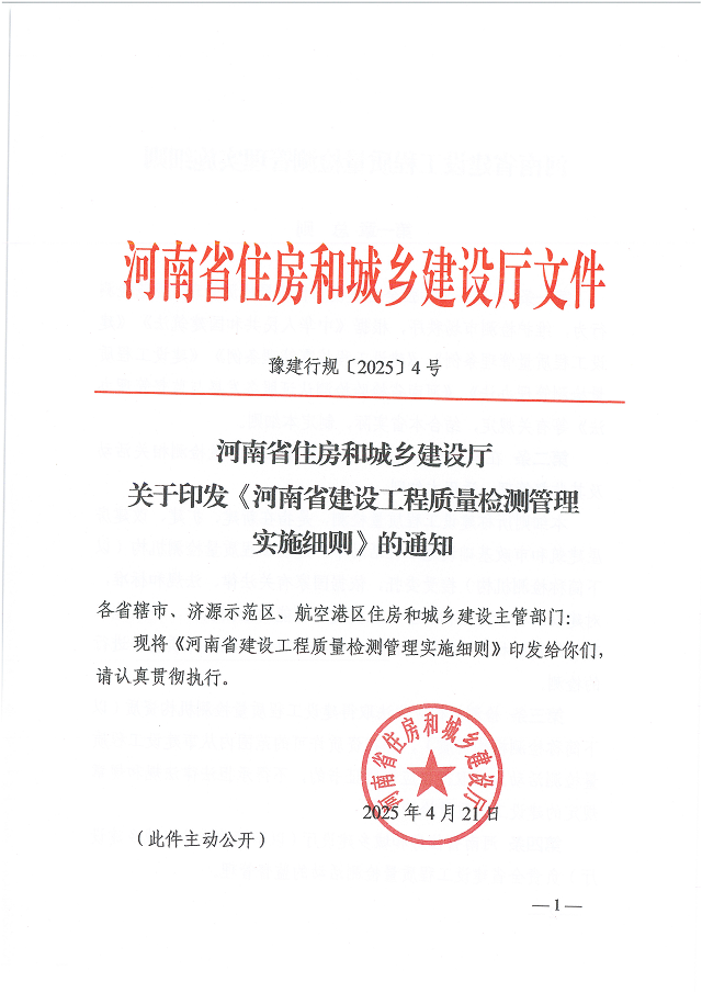 河南省住房和城鄉建設廳 關于印發《河南省建設工程質量檢測管理實施細則》的通知